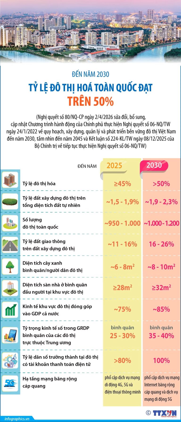 Chính phủ Việt Nam đặt mục tiêu nâng tỷ lệ đô thị hóa quốc gia trên 50% vào năm 2030, thúc đẩy phát triển bền vững và quy hoạch đô