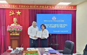 Căn cứ công văn số 546/STP-TH&PBGDPL ngày 17/04/2025 của Sở Tư pháp về việc trao tặng Kỷ  niệm chương “Vì  sự nghiệp Tư  pháp” và được sự uỷ quyền của Bộ Tư pháp, ngày 05/05/2025, Đoàn luật sư tỉnh Quảng Ninh đã long trọng tổ chức  trao Kỷ niệm chương “Vì  sự  nghiệp  Tư  pháp” cho 04 luật sư  tiêu  biểu đã có những đóng góp xuất sắc cho sự nghiệp xây dựng phát triển nền tư pháp Việt Nam.
