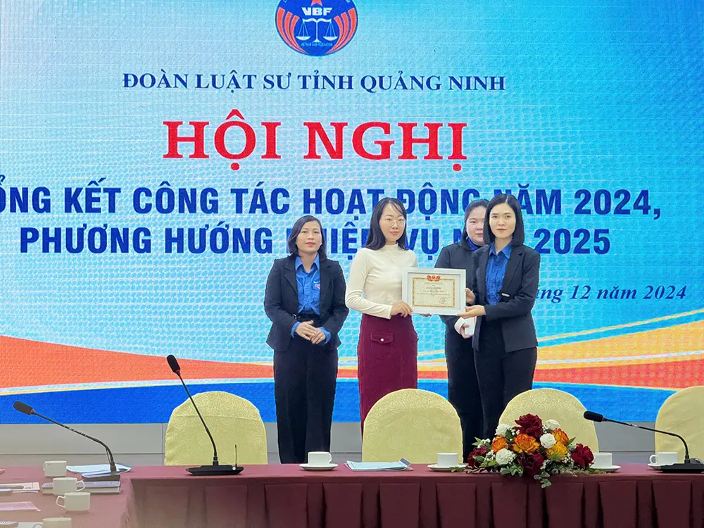 Đoàn Luật sư tỉnh trao tặng giấy khen cho các cá nhân có thành tích trong năm 2024.