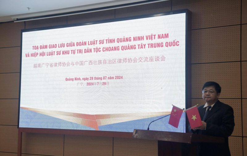 Phát biểu tại buổi Tọa đàm, ông Lý An Hoa, Chủ nhiệm Hiệp hội Luật sư tỉnh Quảng Tây (Trung Quốc) bày tỏ vui mừng khi Tọa đàm được tổ chức tại tỉnh Quảng Ninh – một địa phương có kinh tế phát triển ở miền Bắc Việt Nam và là điểm đến văn hóa, du lịch; đồng thời, thúc đẩy hợp tác và trao đổi giữa Luật sư Trung Quốc và Luật sư Việt Nam.