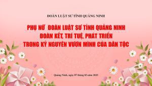 Nhân Ngày Quốc tế Phụ nữ, một lần nữa Ban chủ nhiệm Đoàn Luật sư tỉnh xin gửi tới toàn thể chị em phụ nữ lời chúc thật khoẻ mạnh, xinh đẹp, hạnh phúc, tiếp tục đóng góp vào sự phát triển của Đoàn Luật sư tỉnh Quảng Ninh.