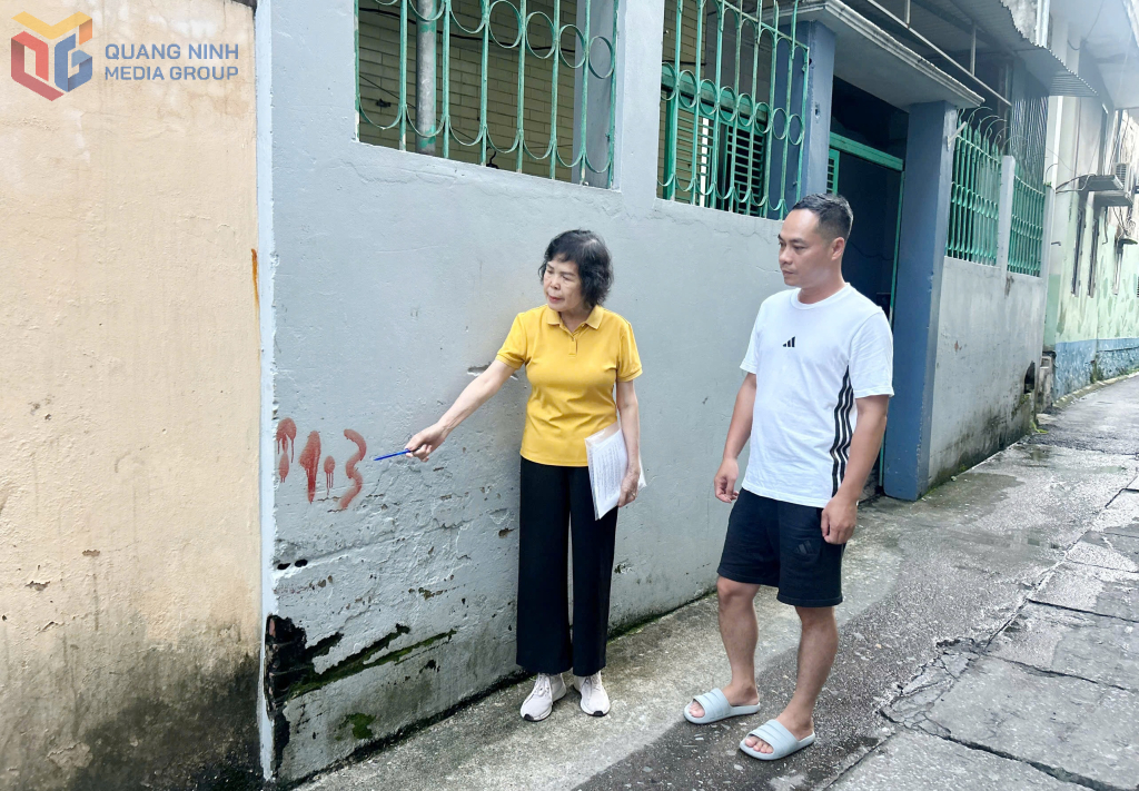 Bà Vũ Thị Thanh Vân, Bí thư Chi bộ, Trưởng khu phố Trần Hưng Đạo 5 (phường Hồng Gai) khảo sát thực địa tuyến đường liên tổ 3, 4, 5, 6.